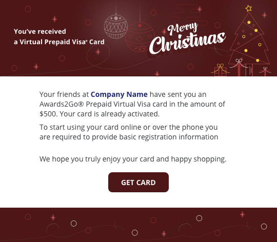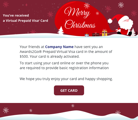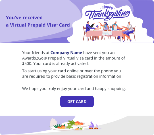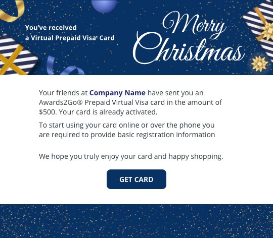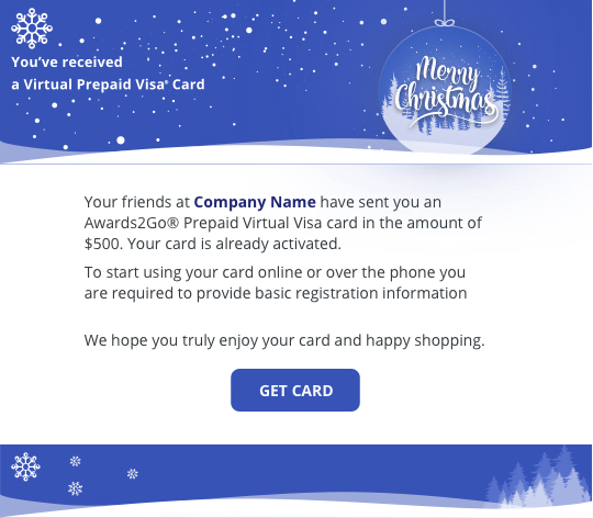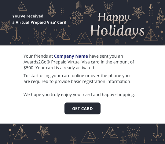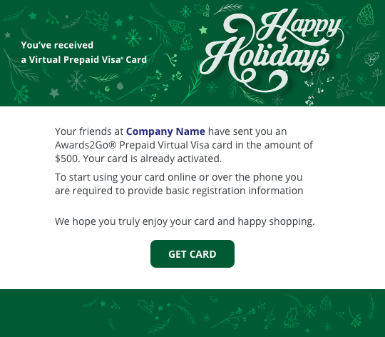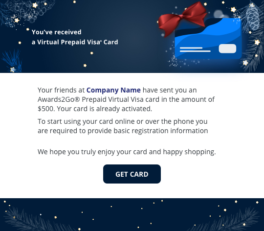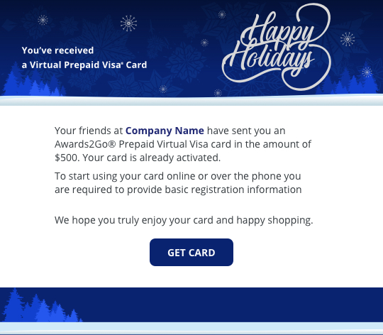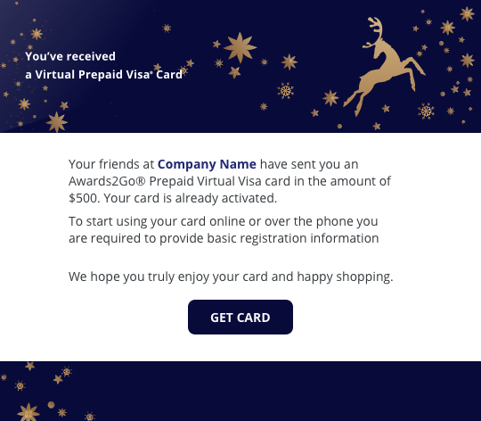 Want to send a virtual Visa prepaid card? Choose either a predesigned template or create your own.
